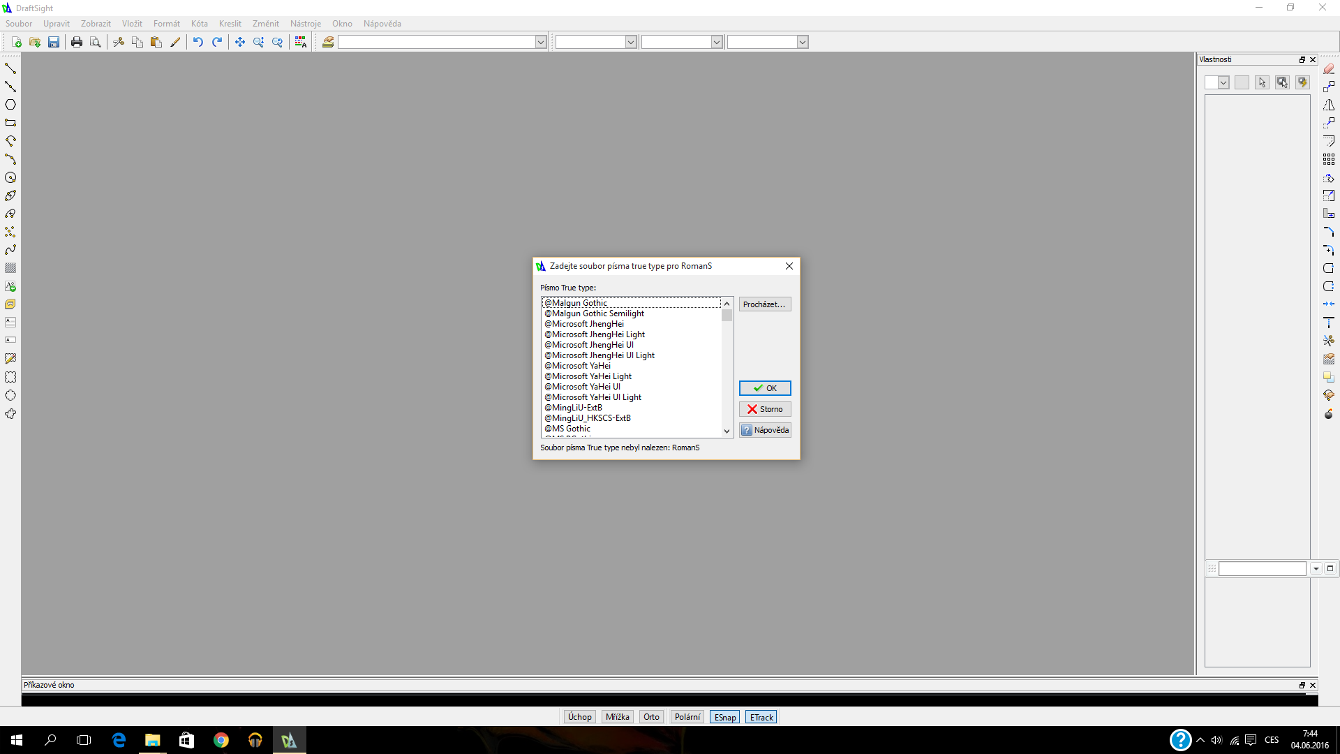 se objeví hlášení hledání souboru písma a po provedení jakékoliv volby je po otevření výkres zablokovaný