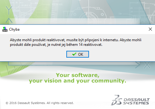 po určité době se mě objevilo chybové hlášení: "Abyste mohli produkt reaktivovat musíte být připojeni k internetu. Abyste mohli produkt dále používat, je nutné jej během ... dní reaktivovat."